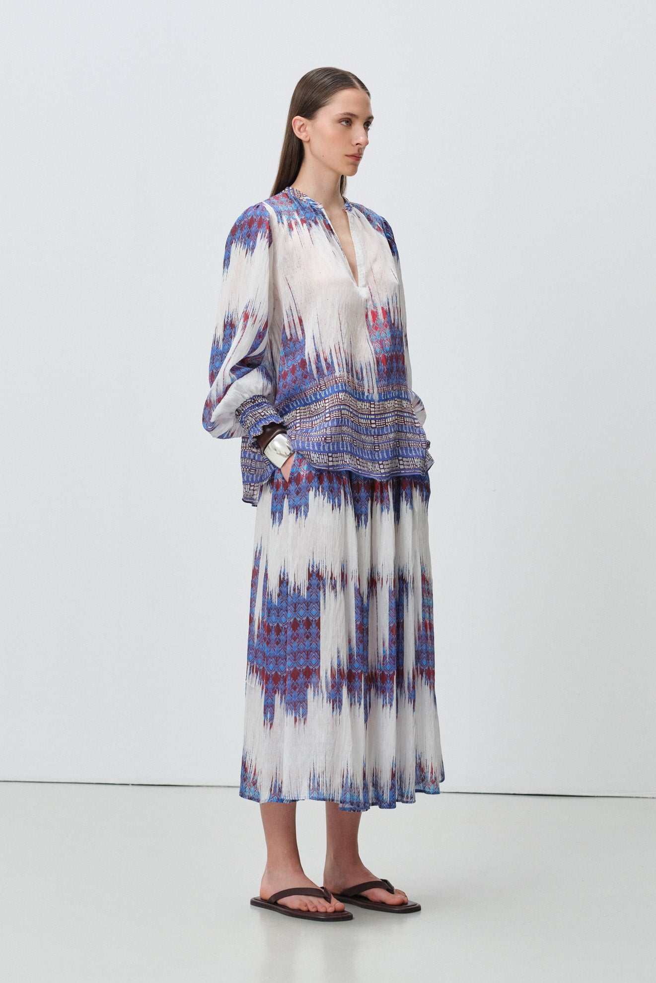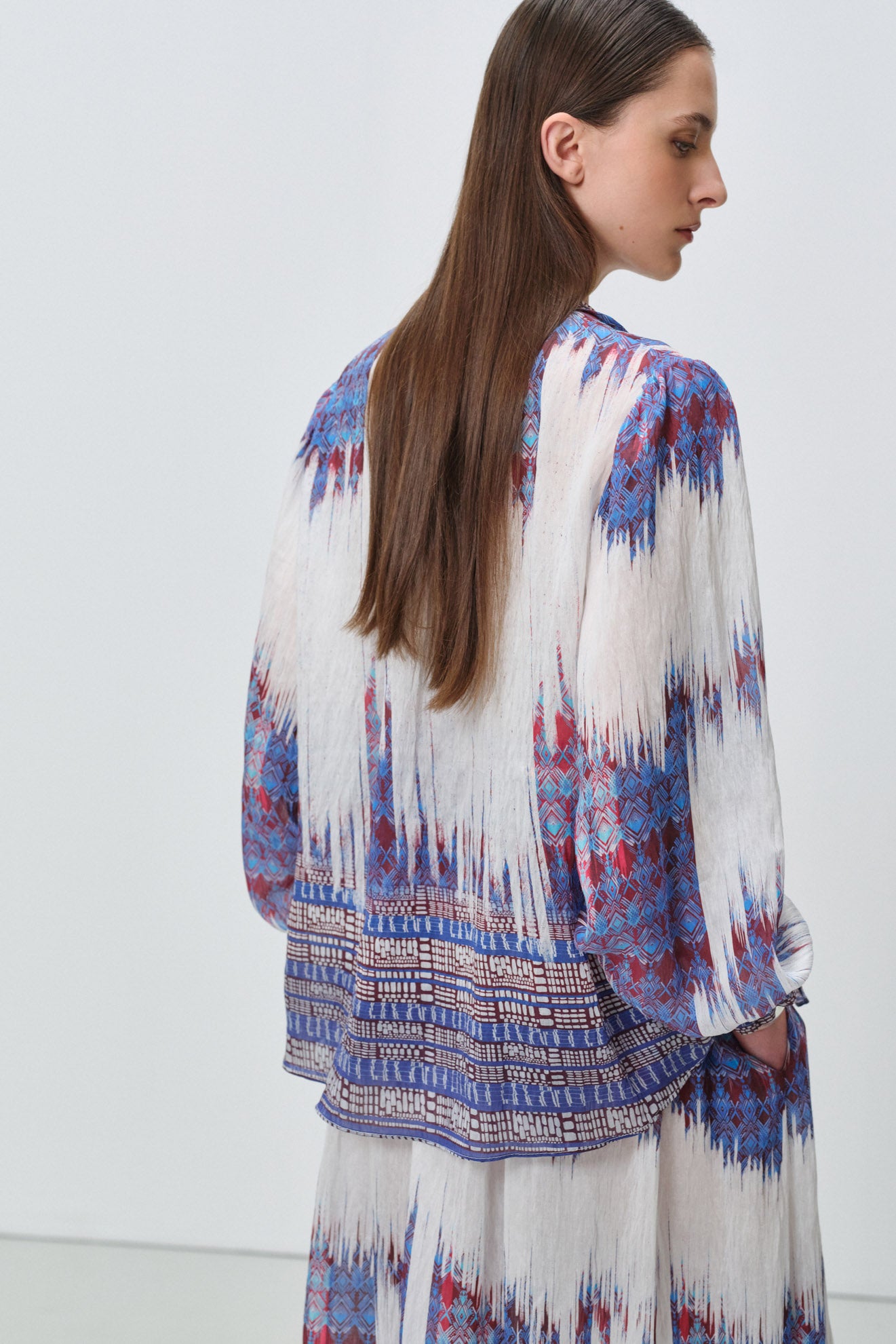 Long voluminous sleeves with elasticated cuffs