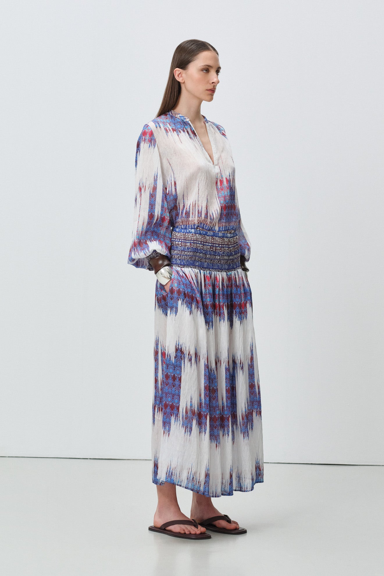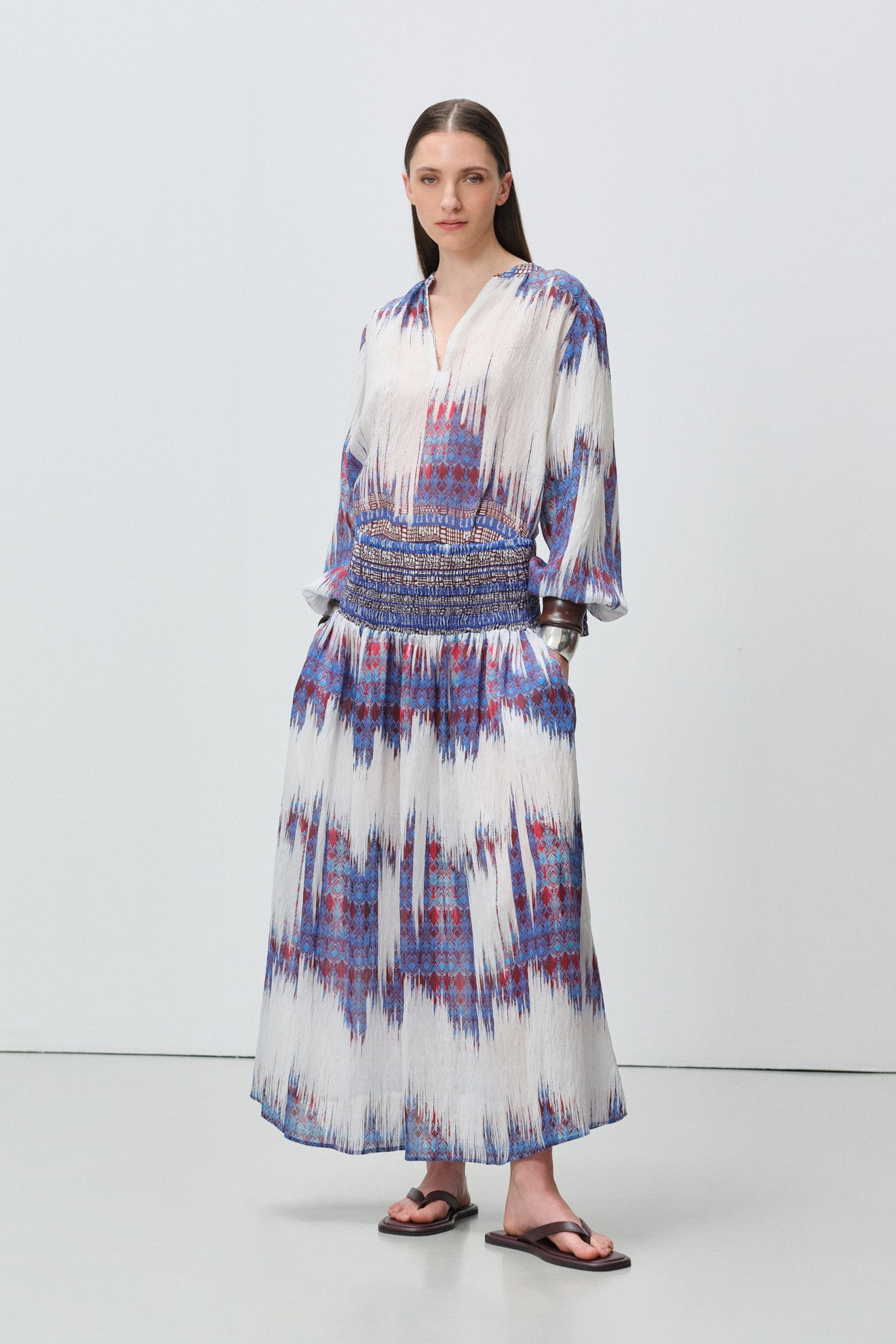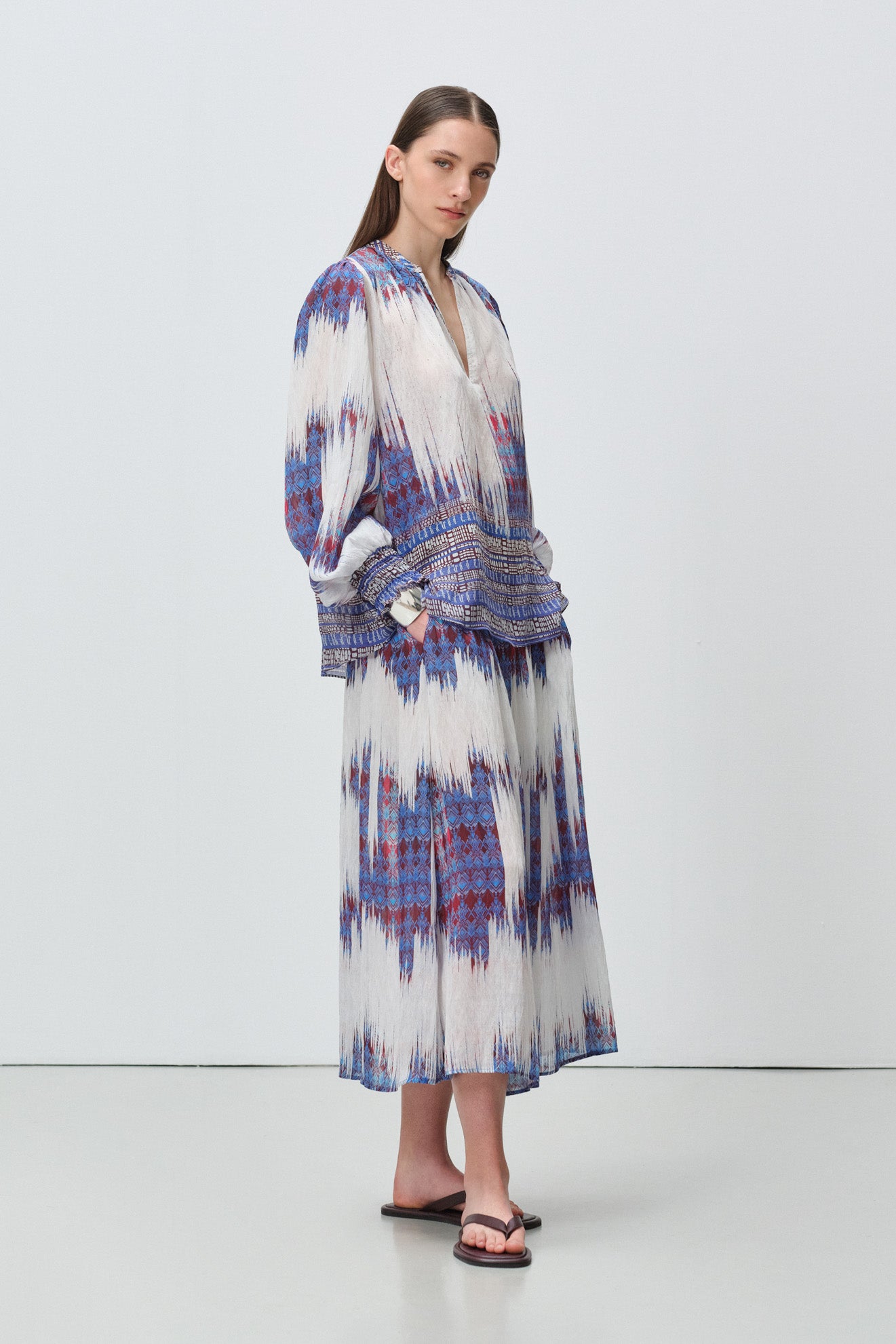 Relaxed flowing midi skirt with soft pleated silhouette